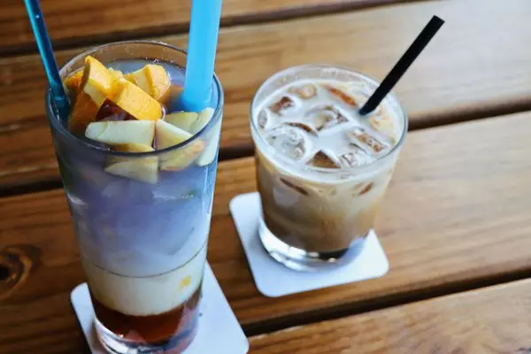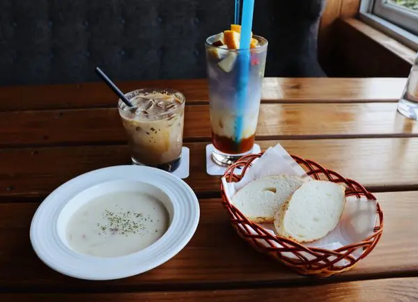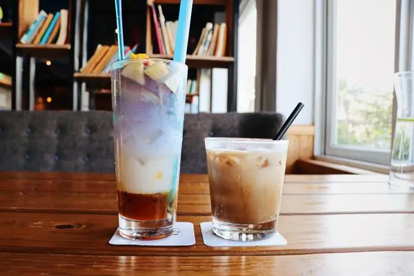 飲品部分有咖啡、熱茶、奶茶、微醺酒精、蝶豆花星空飲品、冰沙與果汁,
