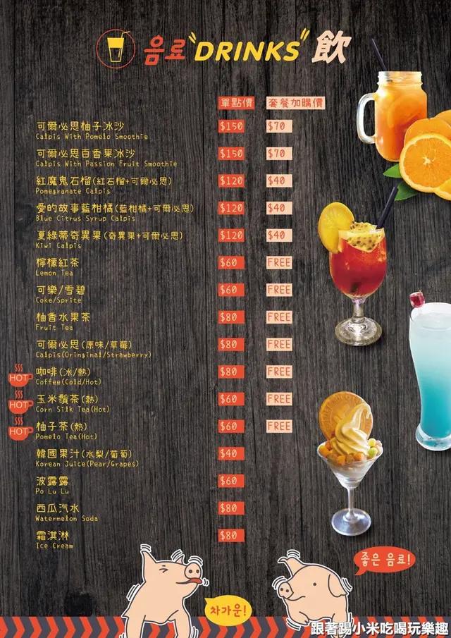 這價格的套餐可以免費選兩杯飲料,紅色的是紅魔鬼石榴,是有石榴清香與甜甜可爾必思混合,很適合女士們享用。