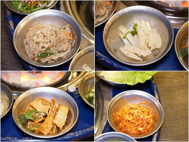 小菜有多達8種任意更換,而且是可以無限續加,個人最愛吃泡菜有小辣的甘甜夠味,用來夾肉吃很適合。其他冬粉.韓式豆皮.豆芽菜也是會讓我想重覆點