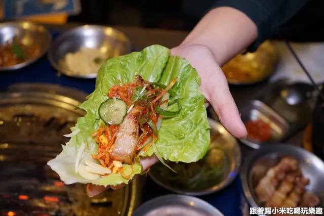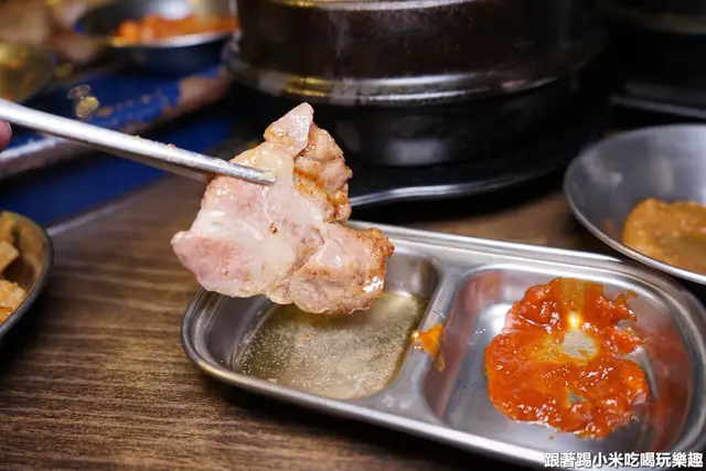 烤至脆皮帶Q的豬皮與五花肉真的好好吃配點韓式味噌醬就完美了~