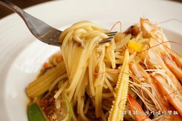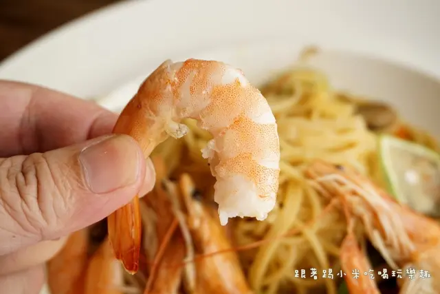 香檸鮮蝦義大利麵 320元(套餐), 這是後來小米和小結巴又再訪吃的新菜色.