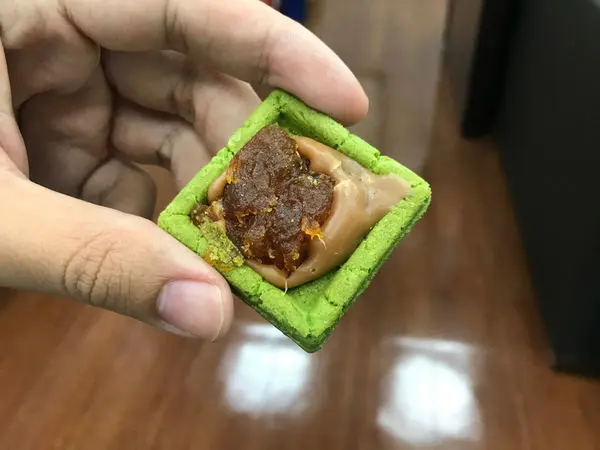 身為 #抹茶控 融合日式跟法式獨創的巴克斯(BOX)餅裡面夾了台灣土鳳梨醬 跟 焦糖醬