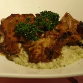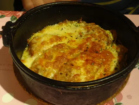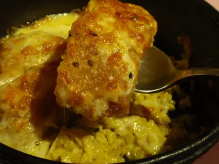 這道菜的雞肉是先炸過,在裹上起司粉做焗烤
