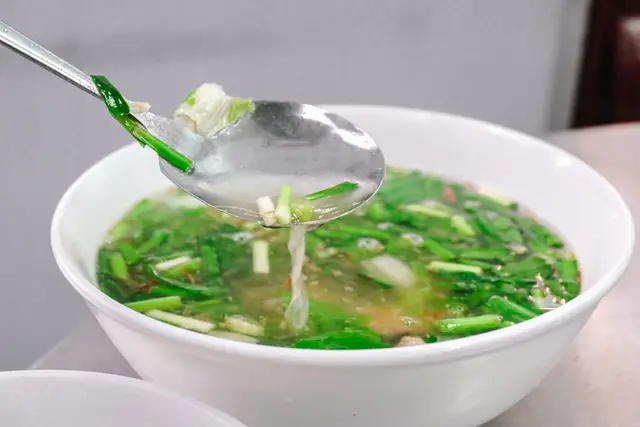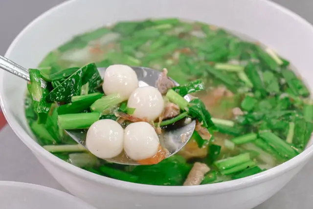 湯頭使用肉絲、蝦米、韭菜、青菜、香菇、紅蔥頭、大骨熬煮,喝起來充滿紅蔥頭與大骨香很甘甜順口,很有古早味香氣,滿好喝的。