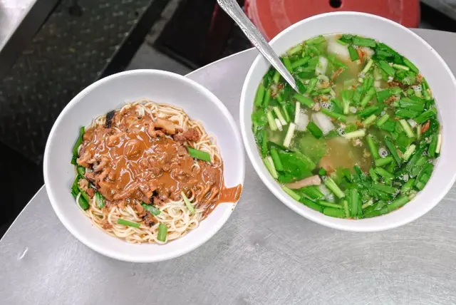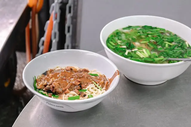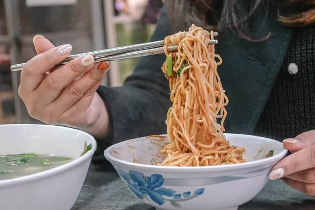 麵條是有點硬度的細麵,芝麻香味濃厚依附在麵上配上韭菜點綴。會忍不住一口接一口,是目前吃過前幾名好吃的麻醬麵,想吃清爽些也可以加些檸檬喔。