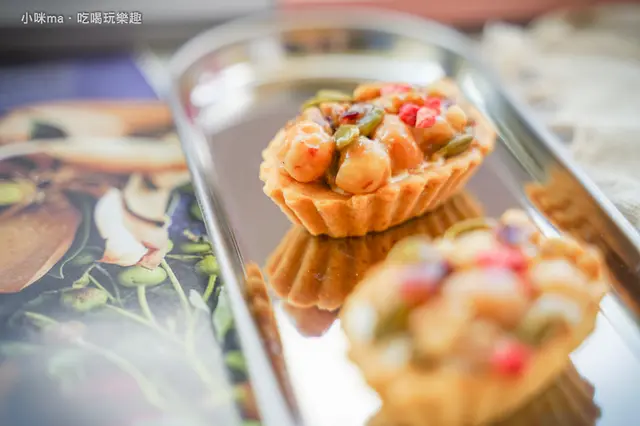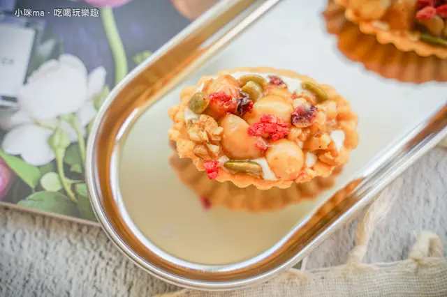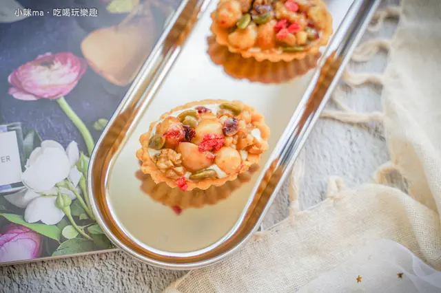 堅果塔的塔皮也是好吃的關鍵,製作塔皮時特別加了柑橘醬下去調味,讓甜膩的塔皮多了股清爽的口感