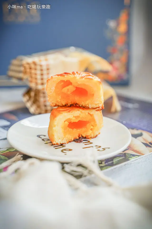 這顆流沙酥的重點就是它的內餡,添加了紐西蘭奶油、進口卡士達、鹹蛋黃、法國鮮奶油調製而成,完全是一種中西合併的概念