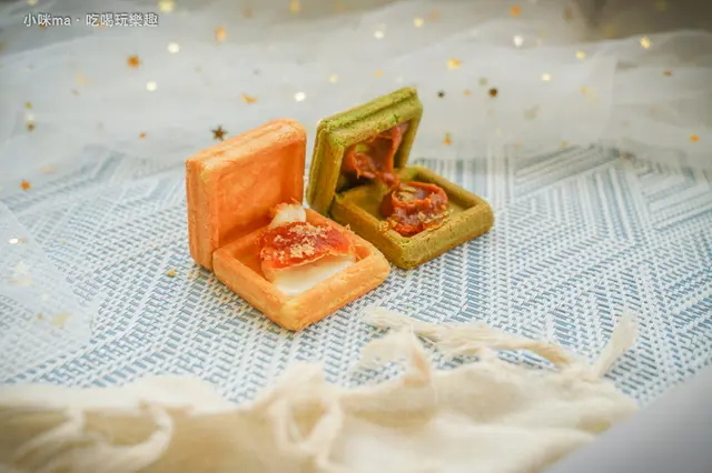 不喜歡吃太甜的可以選抹茶口味,餅皮添加了日本宇治抹茶帶點茶香氣息,也一併中和了甜膩