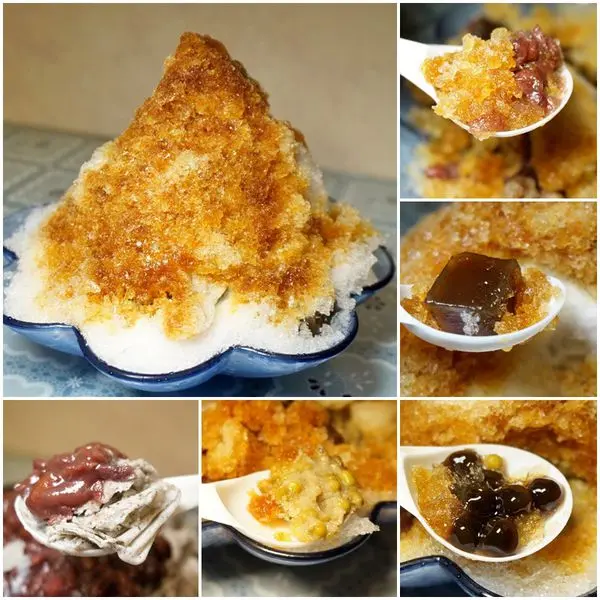 來到這裡當然是來試一下他們的獨家口味黑砂糖刨冰 45元(任選4種元料, 多加1種配料/煉乳/巧克力醬另加5元, 加布丁15元), 小米建議吃原味就好了, 不需再加煉乳或巧克力, 不然會中和了黑砂糖味道. 以這盤45元的份量來說CP值還不錯~ 來開始品嚐吧