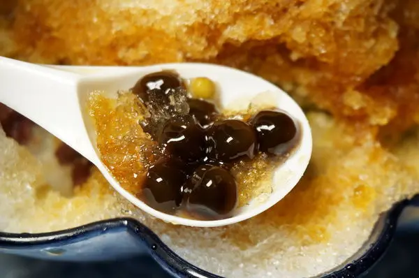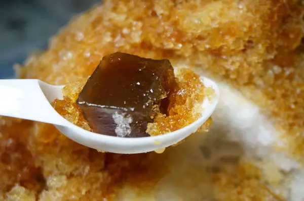 配料有選了他們招牌黑糖粉粿, 口感上是軟Q中帶有一些嚼勁, 有些許黑糖口味道用來配刨冰吃很搭呢~