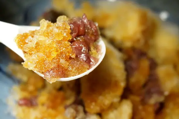 他們的紅豆是煮成紅豆泥, 有半顆粒半泥狀, 吃起來口感是軟綿及甜蜜, 紅豆香氣也有帶到了, 跟刨冰是好朋友