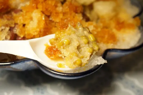 綠豆也是半泥狀, 口感是夠軟綿了, 不過綠豆仁香氣則沒有很濃郁, 下次試別的配料看看~