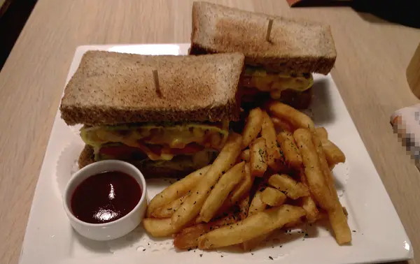 今天點的是一個鮮蔬烘蛋起司三明治以及伯爵鮮奶茶