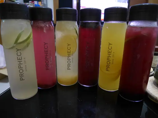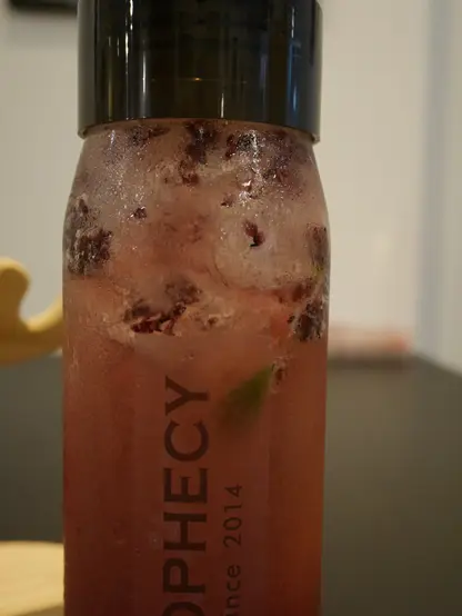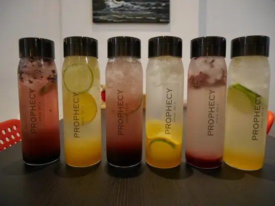 店家秉持著讓顧客吃的健康、喝的安心的精神,於氣泡飲中使用純天然百年老店蜜堂蜂蜜,以及尋找無農藥安全果園製作的蘿拉天然手工果醬、大花農場有機新鮮玫瑰花、再搭配預言獨家自製手工果泥等天然食材,調製出完全不添加任何人工色素的天然微礦氣泡飲!