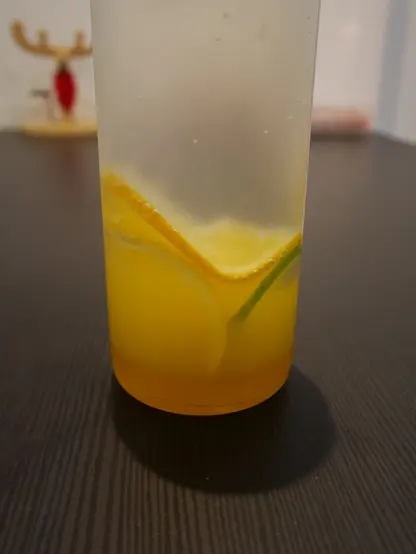 以手工熬煮柑橙果露,搭配新鮮柳丁汁和新鮮柳橙切片,放置一夜到隔天喝,柳橙味道反而更濃郁好喝,而且店家的罐子很厲害,到隔夜還是保留著不少的氣泡。