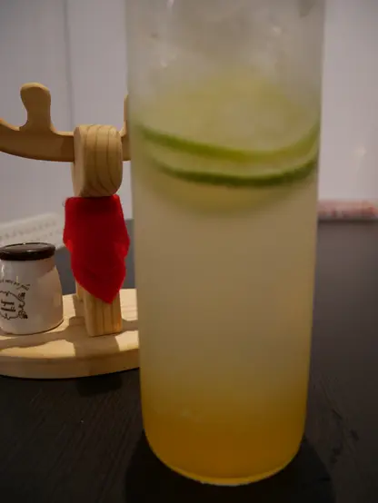 使用百年老店「蜜堂」產地直送天然純釀龍眼蜜,搭配新鮮檸檬汁與有機檸檬切片,是很好喝的蜂蜜檸檬汁,再加上氣泡飲的口感,炎炎夏日中非常的消暑。如果當天沒喝完,老闆娘有提醒要記得將檸檬片取出來,才不會有澀味溶出。