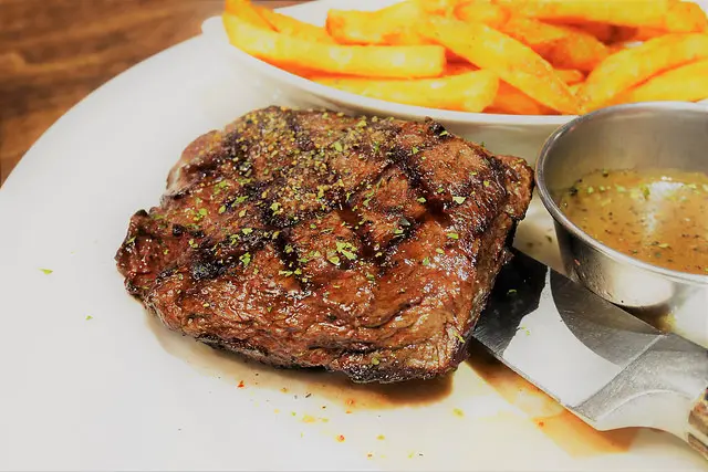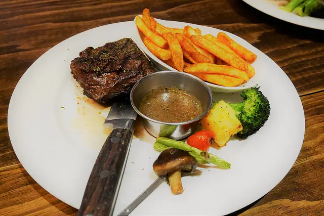 上餐之後可以先將牛排對切檢視肉質的熟度是否滿意,如果過生可以反應給店家進行回煎,