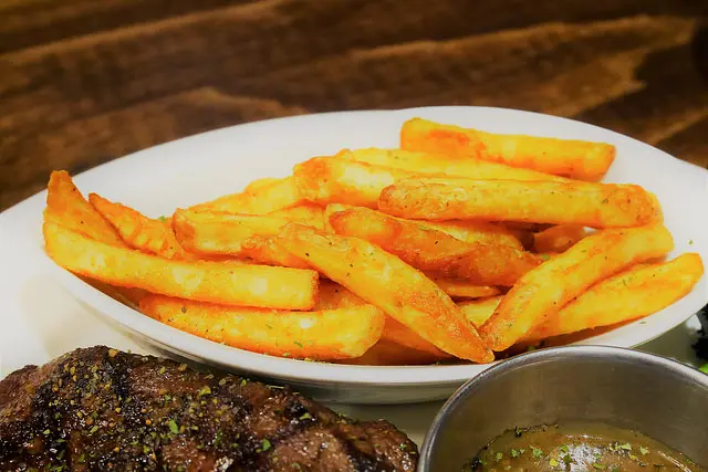 排餐附餐有六種選擇(碳烤蔬菜\薯條\薯泥\風味飯\半隻奶油玉米\地瓜薯條)可以從中選兩種