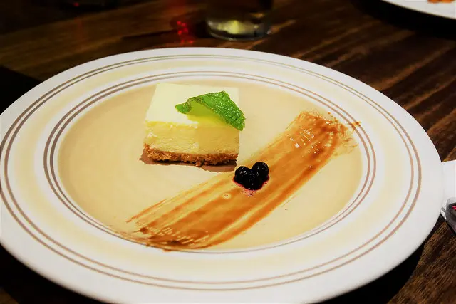 酒釀葡萄乳酪蛋糕是,重乳酪蛋糕佐以酒釀葡萄做搭配,蛋糕本身沒有酒味,是好吃的乳酪蛋糕