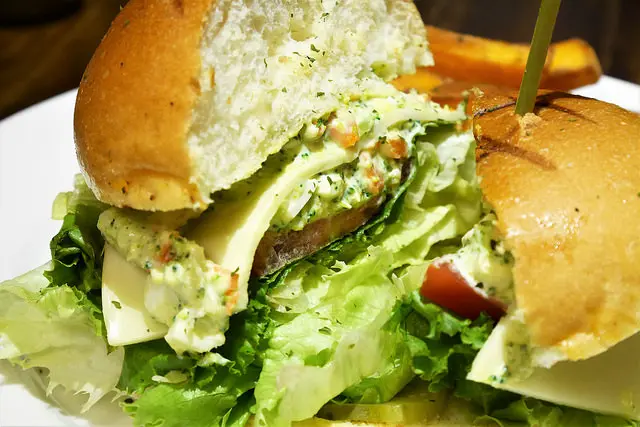 蛋奶素可食用,使用大量新鮮蔬菜與番茄,再加上蛋沙拉,份量大吃得很飽足
