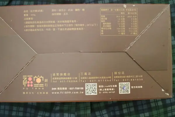 肚臍餅的外盒包裝尖尼覺得相當的有在地精神,前面有論述到他們總店位於苗栗通霄鎮