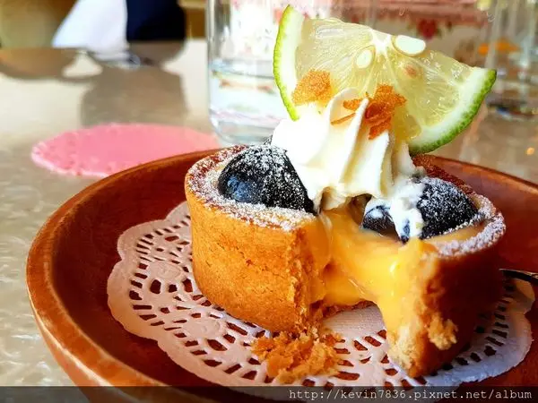 咬下去時,可以吃到葡萄的甜檸檬塔的酸,梅子喜歡上面的一口奶油搭一口檸檬塔