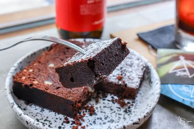 或許是餐點讓我感到太喜歡了,之後上桌的甜點似乎像是挨了一記悶棍,相形失色。蛋糕體本身巧克力香氣及口感也十分濃郁,不過吃起來感到有些乾、且口味呈現較單一,我個人則喜歡蛋糕體較濕潤的巧克力蛋糕樣貌。整體較規矩,若是當成單純搭配咖啡的小點或許不錯。