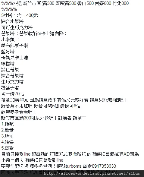下面是我們訂購小塔~~~只要買到一定的額度就可以外送!!(門檻不高喔)~