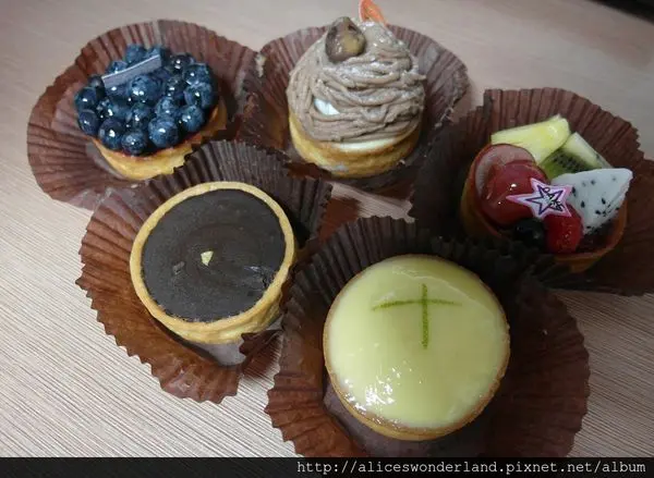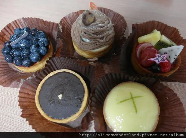 左邊是藍莓塔、中上是栗子塔、右上是水果塔(原本是訂綜合莓果,但老闆說綜合莓果只有水果!)