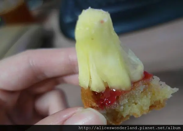 下方側面照,可以看到他們家的塔裡面是類似杏仁醬之類的東西,