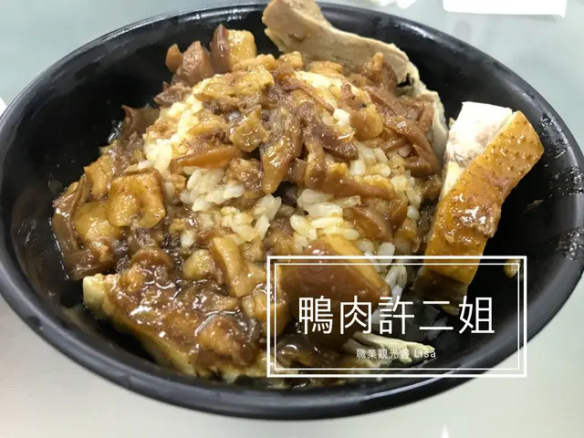 鴨肉許二姐的鴨肉飯與中正店不同,裡頭多加了肉燥,屬於肥肉比較多的肉燥。