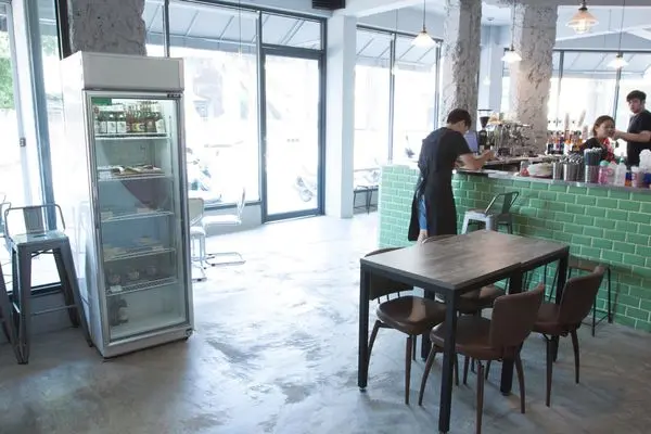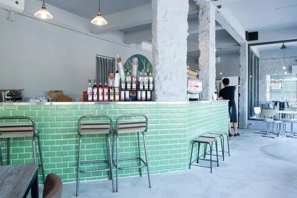 加上相當寬敞的空間,也不會硬塞過多的桌位,水泥地面配上柔和綠磚,視覺上感到放鬆。