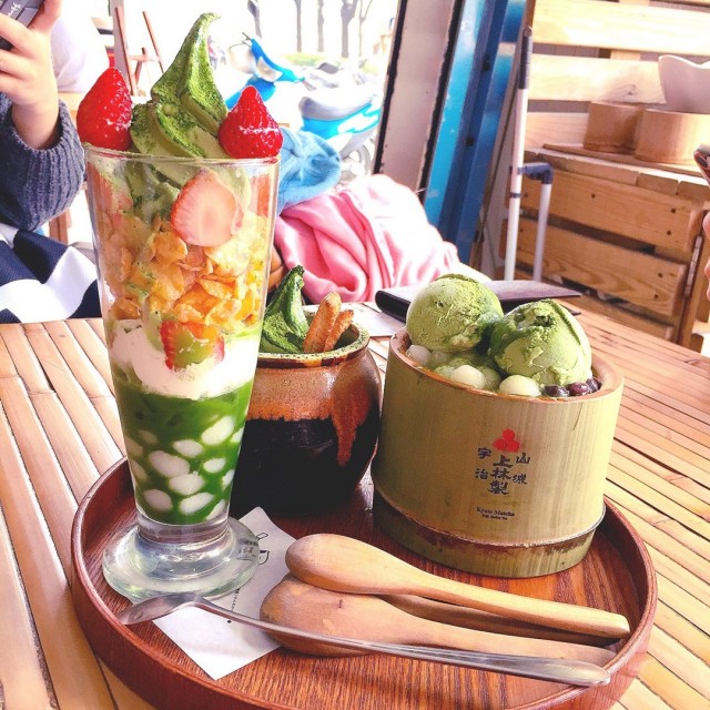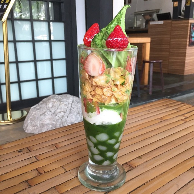 2015.6.15 推薦分數:★★★草DORO與三星園都是高雄知名的抹茶專賣店,草DORO吃了不下三次,但三星園卻連一次也沒有。前陣子跟友人到高雄遊玩,便提議先吃三星園,接著再去草DORO,這樣才好做比較。目前高雄有兩間三星園,這次來的位於民族二路,另一家則是在明誠二路。不論外帶或內用,點餐時都要先付款。將軍の眼淚 $120表面灑上少許抹茶粉,看起來更翠綠盎然,附了兩隻小餅乾,可搭配抹茶霜淇淋食用。下面有穀片、紅豆及白玉,白玉的大小就如湯圓般,不是平常看到的那樣,店家表示有改良過,吃起來少了些嚼勁口感,抹茶霜淇淋算是唯一表現不錯的,其他就中規中矩。三星御抹茶 $110喝起來茶的澀味鮮明,味道偏淡。三星園(民合茶屋)電話:07-226-1616地址:高雄市新興區民族二路50號…查看更多