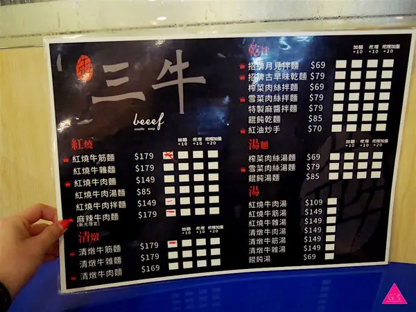 犇。三牛牛肉麵[ 三牛本店 ]高雄市左營區勝利路85號電話/ 07-5887264[ 新光店 ] 高雄市左營區高鐵路123號 (新光三越) 彩虹市集3F 電話 / 07-3452243三牛牛肉麵在左營眷村已有30多年歷史,食材新鮮是好吃的秘訣,選用每日現宰牛肉,堅持天天手桿麵條,身為土身土長的在地高雄人viki,三牛可是viki爸最愛的高雄牛肉麵!viki也是從小吃到大!本店用餐時間時常常常大牌長龍一位難求,這次他在左營新光三越開設新店,一下高鐵或是離開高雄前就可以馬上品嚐高雄的好味道!!!高鐵站直接走過來就是在新光三越的3f,往前走就會看到三牛囉!還沒看菜單前可以看牆上都有這種口味的牛肉麵的簡介!簡單清楚的菜單!牛肉麵的選擇真的還不少~但來到新光店不要錯過新光獨家的 !麻辣牛肉麵!還有附圖片的傳單更清楚!viki在這裡提醒大家!三牛的牛肉麵真的滿大碗的!!小鳥胃的女孩們可以兩人點一碗就好!高雄的好滋味真的很佛心!好吃又大碗啊啊啊桌上的各式調味料吃乾麵絕對不能不加的酸菜~愛吃辣的朋友們也絕對要來一湯匙辣牛油啊 宮保皮蛋/洛神蓮藕40元在別的地方沒看過的特色小菜,宮保皮蛋,皮蛋炸過後,原有的皮蛋的味道較不明顯,QQ的口敢帶有極微的辣,很香很開胃~粉紅的蓮藕用天然的洛神去熬煮,超美的粉色可不是色素染出來的,大家安心食用酸酸甜甜的脆脆的,少女們應該會滿愛的開胃菜! 山蘇小魚 $40 / 味噌蛋 $15/粒山蘇小魚,山蘇脆脆吃得到新鮮的好滋味,好適合夏天的一道健康小菜!必點大推味增蛋,淡淡的味增香氣滷得剛剛好,好吃!三牛的小菜都是用心、費時製作的還會跟著季節食材變化,每次來都有不同的驚喜!吃麵的同時小菜一定要來個三四盤啊紅燒牛肉拌麵 $149這是viki的最愛要夏天了不喜歡吃湯麵~可是三牛的牛肉湯又這麼好喝不能錯過!點這個就對了!!!三牛的牛肉拌麵有附牛肉湯~而且充滿蒜味的牛肉拌麵超夠味超好吃!這厚切牛肉吃起來就是過癮嫩度夠完全不柴,滷得又夠味!這牛肉真的100分啊溏心蛋也非常完美,中間的濕度剛剛好 你看看這麼大一碗!真的只有高雄才吃得到~台北不會有這麼俗又大碗的牛肉麵啊!清燉牛筋麵 $179牛筋又長又大條,而且煮到入口即化,還有糖心蛋和蘭花干,三牛清燉的牛肉湯一點都不油膩,喝起來清爽無負擔!有淡淡的甜味,這可是洋蔥熬出來的,喝起來就是舒服啊~每碗麵都有附半顆超完美的溏心蛋!超加分的一口接一口!完全停不下來聽說清燉才是三牛的招牌,牛筋軟嫩度適中,非常好入口~友人大力推薦我!!!一定要點的好味道 美味不用多說,吃!就!對!了!麻辣牛肉麵 (新光限定)$179viki之前也沒試過的新口味,看到新光店現定所以就點來試試看其實只有微微的辣,所以怕辣的朋友還是試試看 裡面有大大的鴨血,有牛肉片,有糖心蛋和蘭花干,還附小條老油條,他的油條不會一泡就爛,吸飽湯汁還有脆脆的口感很棒~~ 一大碗滿滿的料,根本就是小麻辣鍋的感覺啊!偷偷說viki覺得湯頭有點老四川的感覺~不過沒那麼辣~帶點麻麻的是屬於比較溫和的辣度牛肉不是片狀的,量也不少啊~吃起來也好軟嫩,麻辣湯頭裡的肉片就是夠味好吃!微微的辣鹹香滋味,超!棒滑順Q彈 吸附了紅燒牛肉滿滿的湯底, 大口咬下還會噴汁!是有內涵有層次感的鴨血~三牛不只是viki爸和viki的愛店而是陪高雄人走過30個年頭的眷村牛肉麵大碗又真材實料!不管是高雄在地人還是外地的旅人都不要錯過這用心做的牛肉麵!新開的新光店,一出高鐵就馬上到,超級方便~來到左營高鐵站一定要吃告訴女孩們你喜歡我們Girl's secret 女孩不會告訴你…查看更多