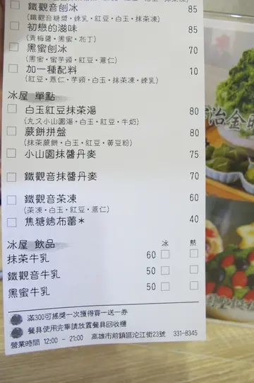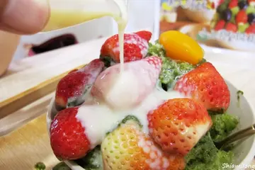 來到高雄怎麼能不來冰屋體驗一下網路上頗負盛名的冰屋呢 ?冬天即將結束,趁著草莓季的尾聲,蝦米也趕快來大啖草莓冰由於剛剛才從喬品賣炒飯離開,肚子裝著滿滿的炒飯實在是裝不了太多冰,所以決定點一碗冰就好想吃草莓的蝦米,超想吃抹茶的小跟班於是我們點了一碗有抹茶,也有草莓的刨冰一二樓都有座位的唷,但是蝦米沒有上樓去參觀後方收銀的對面是餐盤回收區大家吃完冰開開心心的,也要幫忙把餐盤放到回收區唷這樣才是個乖寶寶收銀機旁邊有一個搖搖樂,消費滿 $300可以搖一次但是因為蝦米沒有滿額,也就沒有細問獎品是什麼了完整版價目表請以店家現場最新資訊為準小山園聖誕樹 $160 & 抹茶牛乳 $60將將將將~~聖誕樹造型的刨冰出來見客了~~是不是很吸睛阿 XD蝦米是好奇寶寶,好想問問老闆是怎麼把仙貝做成星星形狀的阿先試了一下原味刨冰主體非常細緻,入口即化抹茶味道非常濃郁,不會過於甜膩但是因為今天的草莓帶點酸度所以後來才又加了煉乳來品嚐若是草莓再甜一點的話,蝦米比較喜歡不加煉乳的原味抹茶牛乳的抹茶香氣也是相當濃郁,好喝~~白玉的部分滿Q彈有咬勁的 食記為主觀意見,口味、感受因人而異,不保證好吃與否,消費前請另外參閱其他網路資訊照片、文字數量與推薦程度沒有正相關,僅供參考文章之留言管理者保留刪除之權利,謝謝…查看更多