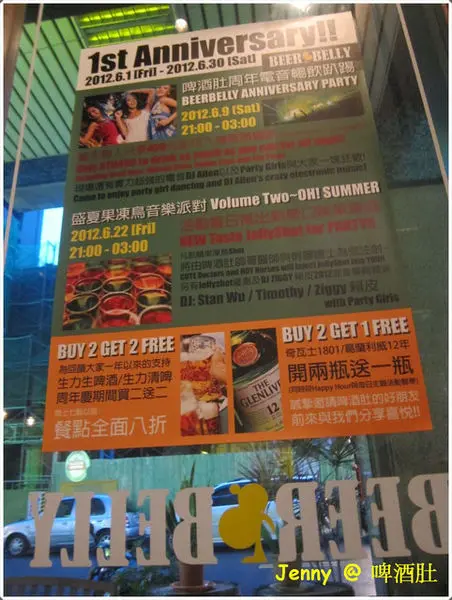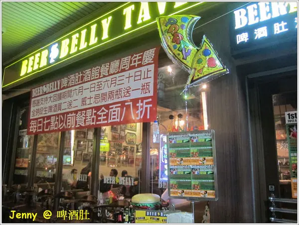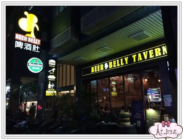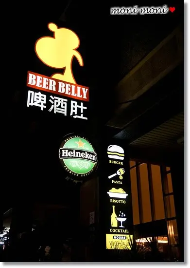 難得的平日晚上可以與家人一同聚餐,這次還是挑了一間很有韻味的英式小酒館啤餐廳—啤酒肚。光是聽名子就覺得這間餐廳很可愛呢,一聽就是要叫你露出圓滾滾的肚子來拍照的地方。或是要暢飲啤酒的好去處,結果這間餐廳去出乎我意料之外的好,餐點不但平價且相當美味,讓我吃完就產生再訪的衝動。通常小酒館的菜色不是分量少,東西貴,要不然就是普通好吃,酒好喝這樣,這間卻打破了我對酒館的印象。啤酒肚餐廳位於在瑞豐夜市附近的巷子內,來這裡如果要喝酒最好是搭捷運來喔~一看外觀就覺得這是一間喝啤酒的餐廳,不過因為看到了他們家的漢堡和雞翅,就覺得一定要來嘗試看看。 啤酒肚餐廳的招牌好可愛,其實不仔細看會覺得很像一隻動物的頭,不過其實是一個胖胖的人撐著肚皮的感覺,超有趣的~店內一邊是吧台,後方則有一堆酒,這裡除了菜單上的調酒,也可以主動請bartender調自己喜歡的酒喔~中間則都是高腳椅的座位,在玻璃窗前有一大片投影機的布幕投影著球賽,看來比賽時來這裡應該蠻high的。靠玻璃窗以及牆面的座位都是用沙發以及較矮的椅子,讓家庭、團體和情侶檔比較自在。 另一面的牆面上滿滿的都是啤酒肚的照片,每張都蠻有風味的,比較多都是外國人的肚子拉,很性感喔XD往上一看,還垂掛著我惦記的萬聖節氣球,蠻可愛,不過萬聖節已經過了,如果萬聖節來這裡的話,活動也很多很好玩吧?!(錯失良機)各種類的基酒,裡面有很多蠻特別的酒種類,像是啤酒的品項在很多高雄的店都看不到。仔細一問,才發現原來是老闆很愛喝不一樣的,所以,常常去台北尋找少見的啤酒,或是直接從國外帶回。真的是老英式酒館的風格,座位採用深色的木頭。吧台中還有一個圓角可以坐,如果想看看帥氣的bartender就坐在這好好欣賞吧~聽說這位bartender的年紀還比我小呢,真是看不出來,他超成熟的~~後方還有一個射飛鏢的地方,很多酒館中必備的遊戲,等等來試試手氣。上樓梯的座位是沙發型的包廂座位,可以一群朋友來這裡,有種遺世而獨立的感覺。來看看這間酒管到底賣甚麼好料?!!菜單一翻開來就是手工漢堡,旁邊有個巨無霸,到現在我都還沒挑戰過這種。漢堡的價位從150元~280元,價位還蠻便宜的,還可以自己加喜歡的配料進去,一片漢堡肉排也才60元。 再來是披薩價位200元~300元、湯60元和沙拉100元,果真還是高雄好,價位親民,食物分量也很足夠。 除了美式的餐點外,還有提供義大利麵和燉飯呢~義大利麵從150元~210元,燉飯從160元~210元。看完就想每種都點一份,野心非常大。另外,還有開胃菜和酒館菜,提供洋蔥圈、起士條、雞翅、炸物拼盤等等。 點完餐後,過不久馬上就有菜上桌。我們還很訝異的問,為何這麼快??結果發現原來是店長在幫我們用平板點時,樓上廚房就會收到餐點內容,如此高科技有效率的方式, moni還是第一次看到。先上場的開胃菜,就非常的亮眼。雞翅烤得相當漂亮,皮帶有點焦脆,卻都沒有烤焦的痕跡。沒有塗抹太多的烤肉醬,由本身的雞翅皮散發出的香氣。 閃閃油光的外皮,白嫩的肉,肉的香甜滋味搭配上酥脆得皮,味道令人回味無窮。上面是雞翅下面則是小雞腿,總共有八隻,剛剛好一人兩隻,這雞翅真的是我目前吃過最好吃的。這份沙拉和一般的不太一樣,沒有大片的生菜,反而是滿滿的小紅番茄切丁、黑橄欖與洋蔥、蒜泥、橄欖油、九層塔葉, 沙拉的味道還蠻像墨西哥風味的感覺,清爽卻又帶點個性,不過我很喜歡,這麼多種配料搭在一起的感覺,洋蔥味尤其明顯。 披薩長的蠻特別的,一上來是還沒切好的大圓餅披薩,綜合奶油白醬的素披薩,很久沒吃素的披薩,感覺清爽健康許多。 八吋大的披薩,服務生會幫你親自切好,他的餅皮屬於比較薄的,上面滿滿金黃色的起士,聞起來很香。裡面是奶油白醬義大利麵的白醬口味,奶味好濃郁,第一次吃到這樣的披薩,通常披薩都是乾乾的配料,這款反而會熱呼呼的白醬湯汁,我個人超喜歡白醬的味道,裡面有小蘑菇和黑橄欖。一整個就是走鄉村健康風味,滿推薦的一道喔~今天都點比較田園的口味,因為漢堡的肉實在太多,所以需要一些蔬菜來中和一下。 好久沒看到義大利麵是捲好的樣子,這間餐廳雖不是專門賣義大利麵的,但是對義大利麵的要求也極為講究。在每道餐點上的用心程度以及口味上都有相當深厚的烹煮底子。 番茄的醬汁很純,可以喝道完整的番茄湯汁,麵條也很Q ,再將花椰菜以及綠色蔬菜點綴在旁,整道麵食變得很漂亮。 重頭戲上場,男生最適合點這種重量級的漢堡,絕對會讓你很飽,飽到不像話。在這漢堡還是沒加其他副料的喔~加了就更不知道會有多高了? 打開裡面瞧一瞧,除了超級厚的漢堡肉之外,上方則是好多片的培根、起士和洋蔥圈。哪家的漢堡可以將漢堡肉做這麼豐富啊!?目前MONI倒是還沒品嘗到,這銷魂聖品的確也是必點菜之一。漢堡肉厚度高達五公分,實在不誇張。真的如眼前所看見的,不是兩層漢堡肉所組合而成的喔!!肉汁鮮美,紅嫩嫩的牛肉香味引人入勝,讓人垂涎欲滴。 上方的培根片和起士融合在漢堡肉排中,讓味道變得更濃郁。這款漢堡的份量真的很大,相信就連男生也很難招架得住。 何況是一個小女生呢?還好今天有家人一同SHARE。這時,漢堡已經對我在招招手,請我把它塞到肚子裡。哈~~ 第一次吃到泰式的漢堡,感覺蠻特別的,自己很喜歡吃椒麻雞,不過搭在漢堡裡味道也很
