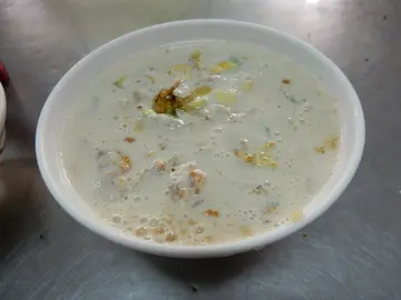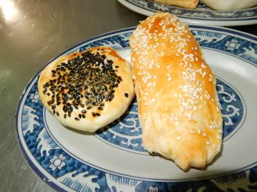 店名:孟記早點地址:高雄市左營區果峰街1巷3號電話:0926-562136營業時間:05:00~11:30 有段時間沒繼續左營的燒餅情報,這次偷空來到的是同在果峰街上的孟記早點。 這裡的品項同樣不少,除原抄得的煎包、三寶肉包與鹹豆漿推薦外,熱心板友PTTyui還提及了咖哩餃。除三寶肉包售完改為梅干菜肉包外,其餘品項各要一個。梅干菜肉包 12元 韭菜煎包 12元 咖哩餃 ?元(未標價) 梅干菜肉包皮薄帶嚼勁而餡飽滿。內餡梅干菜為主體,肉塊只是小配角,這點和萊陽麵食的梅干菜肉包相同,但這裡的梅干菜滋味較重,符合己好。 韭菜煎包相對遜色。內餡類似韭菜盒的韭菜、冬粉等組成,飽滿度尚可。個人不好那偏厚略韌的麵皮,亦無酥脆感。 咖哩餃酥度十足,餡料有咖哩香但不重鹹,吃來挺順口。紅豆餅 12元 白糖餅 12元 酥餅意外差強人意,餅皮整體酥脆度皆一般,白糖餡和紅豆餅的甜度尚可接受。鹹豆漿 20元 豆漿 10元 不喜鹹豆漿的我,對孟記的鹹豆漿卻甚愛,原因在於沒有惱人的酸嗆。由蔥花、蝦皮、油條等食材組合,在加上凝得適切的豆漿和調味,彷彿配料滿點的鹹湯。加點辣油和蔥花醬油,又是另番滋味。 鹹豆漿優良,甜豆漿自然也不差,濃度與甜度(記得可以選)皆合宜順口。 左營區的燒餅情報,終於僅餘海青王家燒餅,莫名有種成就感。整體而言,果峰街一帶的麵餅早餐店確有其優越處,至於哪家才會是心頭好,這就有待您親自走一遭了。…查看更多