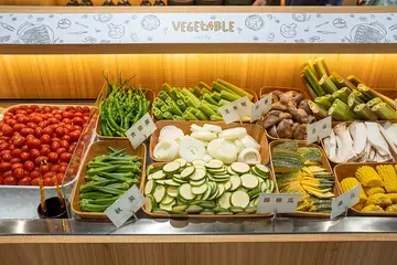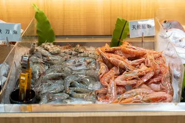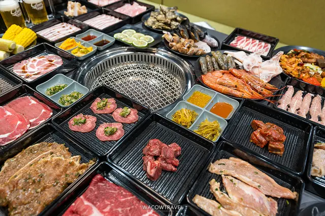Tieguanyin Tea Gelato / 小琉球香腸 / 卡布敦啤酒 / 冰淇淋 / 烤玉米筍海鮮 / 烤蛤蜊 / 壽星隱藏肉品 / 蔬菜區 / 蝦