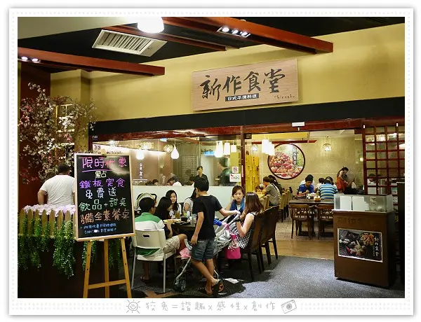 每次到夢時代~就是找不到東西吃!!!B1美食街的東西愛莉絲都不愛,所以今天特地往上走~本來想吃日本料理~但是推著我們家布丁,不給進!所以逛了很久,終於決定要吃這家人看起比較多的店:新作食堂。店內真的人很多,裝潢是比較簡單的日式風。服務人員也還不錯!但算是個地雷。這菜單上的東西看起來都還可以。有蔬菜薯條焗烤(聽起來很特別)跟蔬菜歐姆蛋包飯。加上58元就有飲品+甜點,感覺很便宜。而且服務生還說,任選二主餐可以打85折。 另外還有蔬菜鐵板定食跟點心類及飲品甜品類的單點。洋蔥圈 NT48元。一看就覺得不妙~~~ 這洋蔥圈吃起來不怎麼新鮮。粉很厚,有一種外頭冷凍食品回炸再回炸的感覺~~~ 酥炸魚排蔬菜歐姆蛋包飯 NT168元。這看起不太有賣像耶~~~魚感覺粉佷厚,咖哩的顏色也不怎麼優。這是妹妹點的,他說不是很好吃。一旁的小菜也像是現成的感覺。味噌湯也普通。義式煙燻雞腿蔬菜咖哩焗烤飯 NT228。 還是什麼主廚推薦~~~看起來就不是很好吃。這煙燻雞腿,看起起有點煙燻色~~~ 吃起來怪怪的,很鹹!焗烤飯的飯有點爛掉了。薯條也很回炸感~~~ 這個也像是現成的小菜那種,量販店在賣的那種。起司蛋糕跟香草千層蛋糕~~~ 起司蛋糕還可以,但千層蛋糕就不怎麼樣。英式冰奶茶。就是甜!!!總之就是個大地雷~~~~~~~~~~~~~~…查看更多