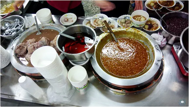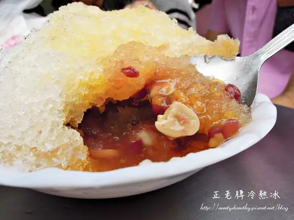 相隔了多年,在遊完墾丁之後,要回左營搭高鐵回台北之前,我們特別轉個彎,來到了潮州鎮,就只是要來回味一下潮州的特色冰品~燒冷冰,上回已經嚐過了藍色招牌的阿倫冰店,這回就來是是白色招牌的這家,也是打著正老牌的潮州冷熱冰。上面那張斑駁的白色扛棒幫她更新一下(2021年四月再訪,順便幫忙更新一下囉!)兩家冰店就剛剛好都位在圓環邊,一左一右互相對望著。至於哪一家才是正老牌,在此就不贅述,上回寫過的藍色招牌燒冷冰(阿倫冰店)這一篇已經有寫過了,有興趣了解的朋友,就給他點進去看看囉!跟上回來一樣的情景,白色招牌這家店的客人還是比起對面那家來的多一些。說真的,放在攤子上的配料與做法,兩家幾乎是一模一樣。就連價目表上的品項也都是差不多一樣的冰品,單價已調漲為50元。(2021.04.22更新)同樣有教您怎麼吃燒冷冰最正確,而這邊唯一不同的地方,應該是多了這面簽名牆吧。這鍋是現煮的湯圓,光用看的,就能感覺到他的Q彈美味啦!不過這回的翔哥,很沒創意的點了草莓牛奶冰。這碗草莓牛奶冰,倒是喚起我小時的記憶,雖然淋上的是看起來不太健康的草莓漿與煉乳,但帶著濃濃的古早味冰品,還是讓人喜愛,這樣也好,讓翔哥嚐嚐以前我們吃的草莓冰是什麼滋味也好!再來就是燒冷冰上場囉!一碗50元。記得不要攪拌,從邊邊開始吃就對了。用料還是同樣豐富,每一口幾乎都能吃到芋頭、紅豆、花生及湯圓,燒冷燒冷的吃,就是這一味啦!一嫂念念難忘的綿密芋頭,很甜呢!包了花生餡的湯圓,一樣是香噴噴的讓人好吃到說不出話來。很快的吃完了冰,準備打道回台北了!說實在的,潮州鎮上的這兩家燒冷冰,口味上並沒有什麼不同,我想應該是師出同門吧!下回來到潮州的您,也不用特別去選什麼顏色的招牌來吃,兩家真的沒有太多差別啦!…查看更多