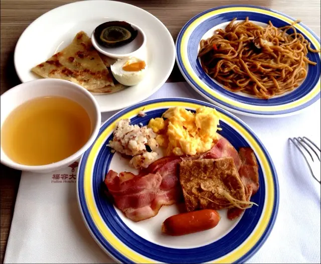 看到 Cyndi 的文章 才想到,華泰瑞苑的食物篇我還存在草稿裡沒發,真是太對不起這樣悠閒的早晨了。我們在華泰瑞苑住了三天兩夜 除了環境很滿意外,華泰瑞苑完全詮釋了所謂「度假飯店」的宗旨 -- 早餐可以吃到 11:30 (((明明就是自己愛賴床其中有一天我們居然吃了三個小時的早餐,只能說續住真的超有度假的感覺阿,這是毎次兩天一夜小旅行總要趕著 check out 的我們夢寐以求的,在台灣想不到去哪玩,就連定兩天飯店吧,真的很棒!!!!早餐餐廳在一樓,MU LOUNGE 第一天我們坐在室內靠窗的位置,餐廳底那個鏡子超夢幻的!!第一天早餐大合照,基本上華泰瑞苑的早餐都是一人一個 set,套餐式的,只有麵包是兩人一起 share麵包第一輪上了不同的口味,但可以續加,不過其實整個套餐吃下來肚子根本也塞不了太多麵包XD這邊的手工麵包跟特殊沾醬都有很有水準,醬料選擇豐富特殊,非常好吃!!蔬菜水果沙拉,醬汁也是特調的,有水果風味主食粥,雖然粥是中式,但配料又相當西式,吃起來變有點甜味的粥,口味很討喜西式主食有香腸、焗烤麵、炒蛋水果現打柳橙汁然後是第二天的早餐,因為前一天來太晚沒搶到戶外座位,第二天就更晚下來吃,人幾乎都走光去 check out了,結果順利坐到露天座位用餐,有遮陽但太陽有點小曬,不過早上的溫度還可以接受真是太喜歡坐在池畔了,用餐之餘能順便享用大尖山及泳池的美景!!!第二天早餐全部!!有些跟第一天重複,但是類似的水果 / 沙拉這天的沙拉都是蔬菜類,也發現華泰瑞苑用的食材都很健康,有營養巨星紅菜頭耶,喜歡保留食物的原樣,吃食物不是吃食品,讓近期開始注重健康的我們看了很開心麵包跟前一天類似,吃完了可以跟飯店要不同的口味主食的部分一樣有前一天的粥,另外西式就是這個囉由蘆筍、肉、蛋、培根等組成,還淋了起司,比昨天的更讓我喜歡,擺盤也好漂亮這天是西瓜汁,果汁都是現打,喝得到果粒。果汁喝完還想待著放空也沒關係,飯店會提供紅茶 / 咖啡,如果想賴著不走就在這邊曬曬太陽放放空吧!!人生就該浪費在美好的事物上其中一天晚上因為不想離開飯店而直接在華泰瑞苑用餐,華泰瑞苑的餐廳有 沐餐廳 跟 MU LOUNGE 可選,由於沒有訂位 沐餐廳 早已客滿,也只能選 MU LOUNGE 用餐 (右邊)沐餐廳是華泰瑞苑的高級餐廳,我們看了菜單一人動輒兩千上下,好險沒位置不然花太多錢啦會很有罪惡感的XDDMU LOUNGE 早上吃早餐,在晚上則是小酒吧也是單點的餐廳喔,當然華泰瑞苑的價位都不低,一樣主食大改兩三百之類起跳的吧,我也有點忘了。後來點了番茄牛肉面來吃,貴鬆鬆的牛肉麵上菜的時候是沒有湯的喔,服務員會協助倒湯,感覺好高級XD然後番茄牛肉麵的味道真的是.....天阿.....很想直接衝去墾丁只為了吃它阿,這牛肉麵我完全願意給滿分 (還是我們當下真的太餓XD) 湯頭真的很厲害、很入味,菜也相當新鮮,牛肉也是軟嫩阿 (我吃牛肉麵最重要就是肉啦),實在是太讓我們驚豔了!!!然後是佐料,可以直接加進湯頭裡面的辣椒、蔥、酸菜、辣油另外我們還點了一盤炒飯來吃,沒記錯應該是櫻花蝦炒飯,雖然只是很基本的炒飯料理,但要能把基本菜色做到讓人印象深刻也真的很不容易,華泰瑞苑的餐廳做到了,怎麼可以那麼不油膩、那麼入味,米飯又是粒粒分明的,真的很好吃,很有水準。早上那面鏡子到了晚上,有種來到愛麗絲夢遊仙境的魔幻感耶!!!華泰瑞苑晚上的單點餐點其實讓我們更驚喜 (本來以為是走"精緻"路線沒啥爆點),入住不知道吃什麼又懶得下去大街上,真的可以考慮在這邊用餐喔,滿意分享!!再看一次早餐露天座位的美景,看著看著又想回去了>///<查看更多