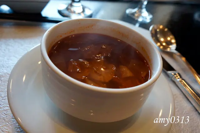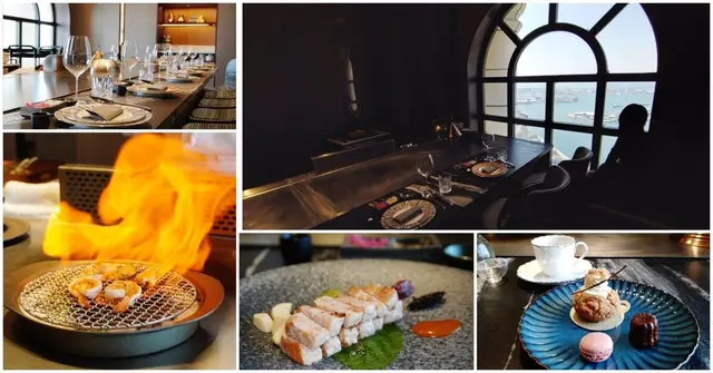 高雄漢來 焰.鐵板燒 | 高雄市前金區漢來大飯店45樓高雄指標性鐵板燒-高雄漢來 焰.鐵板燒燒改裝以來一直都非常受歡迎用全新的品牌更年輕化 ,位於漢來大飯店45樓 ,飽覽高雄港海洋音樂中心全環景景觀重新設計的菜單每個環節都充滿儀式感,大量使用台灣在地小農產品 ,提供一個完全與眾不同鐵板燒體驗~45樓電梯出來接待處 專屬於品牌入口但是進去後, 兩邊是分開營業 ,漢來 焰.鐵板燒除了有傳統的鐵板燒座位也提供了小型包廂就算約會也可以擁有自己完整的空間~現在很多新開的飯店樓層使用上比較擁擠但是傳統高級餐廳很注重門口Lounge 空間讓客人在入座前,有一個可以舒服等候的空間這次鐵板燒全新規劃方式以包箱為主進到門口區域是大桌區,同時可以容納兩位師傅為客人服務明亮的空間, 一望無際的海景絕對是高雄最頂級鐵板燒享受~如果是大家族或者是公司團體,可以容納16人最大的包廂擁有環景海景景觀,從高雄港展覽館延伸到海洋音樂中心一次飽覽 ,覺得會友與眾不同的聚餐體驗~我們預訂小包廂最多可以容納6位裝潢保留了經典的花窗,拍照拍起來很有古典風格,回想二十幾年前跟著家人入住漢來飯店陪著外公外婆吃了多次的漢來海港,一直到現在高雄海岸線改變了很多,變得更加漂亮更加現代這是改裝特別整個鐵板燒的桌子做個轉向讓客人擁有更好的景觀~日式懷石精神, 法式精緻感融入在鐵板燒中,鐵板燒桌的石材用的非常厚實,我很喜歡這個顏色多了一份沉穩感,卻不失現代美感風格,經過多年改裝,漢來飯店館內所有餐廳都經過重新更新繼續引領高雄頂級餐飲地位~可以選擇一般Flat water (Acqua Panna)或者是 氣泡水,S.Pellegrino 香檳般細緻的氣泡最適合佐餐享用儀式感就從擦手巾開始,現泡濕紙巾之前在很多懷石料理看過,蠻可愛的洛神花醃製苦瓜 l 洋蔥一開始聽到苦瓜其實有點怕想說怎麼會有這個東西XD不過口感有點出乎意料的清爽尾韻會有點苦,洋蔥隨時可以續加作為每道菜前過場很不錯~這次改裝使用的餐具都很有質感,完全就是為了這品牌量身訂做套餐為主用餐方式平日中午增加供應午間套餐其他時段供應精選套餐,今天我們點了精選套餐加上午間套餐但是不變的是, 兩個份量都超多第一道菜就看師傅搬出了小炭爐完全猜不出來要做什麼~松本茸茶湯 | 魚池紅茶 | 法式清湯原來是要現烤松本茸,站起來的松本茸有點可愛XD烤的方式突出姑香,最後稍微注入傳統法國清湯傳統法國清湯需要多種工序把雜質去除過程也不能有過多攪拌主廚特別加入了魚池紅茶作為混搭黃金湯頭帶茶香,品嘗起來不會太鹹很清香,展開今天美好開始開胃菜日本白蝦 | 台南白柚 | 胡蘿蔔慕斯胡蘿蔔慕斯口感柔軟日本白蝦爽脆口感很搭配容器非常可愛,不會像傳統鐵板燒這麼剛硬,我覺得是這次焰,讓人很耳目一新的地方米麵包清酒酒粕 | 油醋醬漢來烘培坊一向有很不錯的水準自己平時有時候都會特別買麵包來吃,米麵包是特別為餐廳特別製作已經詢問過, 是不會單獨販售清酒酒粕完全提升了麵包層次使用米來製作不會有負擔, 外酥內柔在料理前,師傅都會先展現當天新鮮食材精緻套餐 冷前菜海膽蒜香奶酪 | 水梨赤海膽現在鐵板燒要讓人驚艷,不管前菜主菜都要非常用心冷前菜特別創作出海膽奶酪,吃起來鹹甜沒腥味,有種歐式平衡的搭配,水梨清爽是不錯的陪襯午間套餐 | 冷前菜味噌起司片 | 鴨胸火腿 | 焦糖鴨肝布蕾午間套餐提供鴨肝布蕾口感濃厚煙燻過的鴨胸火腿,層次上很有法式餐酒感覺來到熱前菜部分今天提供的各種不同海鮮~為了符合色香味全鐵板燒體驗在烹調過程帶入了很多儀式感,這些儀式同樣有為菜色帶來全新感受,像是香料煙燻,直接炙燒百里香, 迷迭香等香草蓋上塔吉鍋蓋煙燻, 完全讓人耳目一新在打開蓋子前師傅特別請我們稍微往前來感受這個撲鼻而來的煙燻香氣~熱前菜南非海虎蝦 | 北海道生食級干貝 | 九孔鮑魚煙燻過後香料的香氣更突出卻沒有那種直接醃製會影響海鮮原味的問題來到湯品部分其中一份使用的小卷採用現場料理~美濃白玉蕪菁湯主廚特別去找了熟成廠商把澎湖小卷做成一夜乾在前面介紹時我還很懷疑, 小卷也可以?結論發現其實更有風味,底部蒸蛋跟濃稠湯頭完美融合~豆漿海鮮湯底 | 芋頭冬瓜加入豆漿的海鮮湯芋頭吃起來綿密本來覺得喝起來可能會很甜膩卻不是又是出乎意料的單品精緻套餐梨山高麗菜特別選用來自梨山的高麗菜高海拔種植出來的菜葉爽脆又夠甜鐵板煎完後, 加入高湯餵煮非常費工出乎意料加入起司粉還有松子看似簡單的一份青菜,除了爽脆外多了鮮甜,起司散發淡淡奶香個人很喜歡午間套餐蔬菜盤澎湖冰花 | 白灼鰻魚 | 洛神花午間套餐蔬菜盤用比較傳統方式提供不過加入了白灼鰻魚洛神花天然調味, 也有不錯的表現來到這邊其實也蠻飽的份量真完全不是開玩笑, 終於要進入主餐XD同樣先展現食材精緻套餐當日鮮魚 | 加納魚 (澎湖真鯛)精選套餐主餐前,還會先上道當日鮮魚,當天提供的是澎湖真鯛口感上扎實鮮甜~黑白木耳醋飲煙燻龍眼加入紅棗蠻有顆粒感也不會太酸去除口中味道,準備好迎接主餐的到來精緻套餐伊比利豬 | 帶骨豬里肌今天的主角(主餐)終於要登場很大膽使用伊比利豬的帶骨豬裡肌作為主餐排餐料理,里肌部分其實油脂較低,很考驗主廚料理能力除了傳統玫瑰鹽這次主廚T