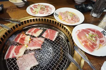 來自日本的牛角燒肉專門店在台灣營運時間可以說是非常長分店遍布北中南, 從一開始的單點燒肉, 慢慢走向部分吃到飽的形式現在下定決心全天候要供應吃到飽套餐~~  上次在台灣吃牛角真的講不出是什麼時候XD只記得那個時候全部單點滿貴的不過海外店倒是吃過蠻多次像洛杉磯, 溫哥華, 曼谷分店反而日本的還沒吃過哈哈在美國牛角是比較偏向居酒屋的經營方式曼谷就跟台灣現在的狀況一樣, 都是吃到飽為主 現在吃到飽提供三種價位分別是 599 , 699和899可以按照自己需求或者是喜歡吃的東西來進行挑選假日會再加100~另外牛角其實也沒有放棄單點還是有一些單點套餐可以選完整菜單請參考我  入坐時服務人員會詢問想吃哪一種價位如果沒有決定好的話會先給3種不同菜單參考決定好後會提供相對菜單的menu我們今天選的 $599+10 輕食方案就很適合不太吃海鮮的朋友品嚐基本上都是肉類加上一些熟食為主號稱總共70種選擇吃到飽 我個人覺得牛角吃到飽方案很不錯的地方是他並沒有需要自己走出去拿東西包含飲料都是跟服務人員點, 然後會幫忙送上其實這還蠻加重服務人員的工作量不過這次來到巨蛋店覺得他們的人員其實算蠻多的並不會有找不到人幫忙點菜的狀況聚餐來講不用走來走去, 可以專心聊天吃飯我覺得這是一個非常大的優點 另外一個牛角很不錯的地方就是採用電子火爐三段式調控火力穩定雖然碳烤有它的風味不過電子爐也有他容易控制的地方  醬料調味的部分都在桌上完整排列 牛腹肉這個套餐的牛肉基本上是以牛腹肉部位來做變化光是口味就有5種選擇~我個人還蠻喜歡原味或者是鹽味表現得都非常不錯 黑龍牛腹肉另一個選擇是厚切的牛腹肉黑龍我覺得是有經過醃製另外一款白龍就清爽很多 白龍牛腹肉看得出來牛腹肉的油脂比例還蠻高的 豬五花豬肉總共三個部位選擇豬五花算是肉質還蠻甜的 豬梅花梅花豬比例oK也有一定的厚度 松阪雞 Chicken neck我想了一下松阪雞是什麼後來看到菜單英文原來是脖子XD還蠻推這個部位去骨肉質也很嫩 豬背肩里肌里肌部分個人覺得還蠻嫩不太會有傳統覺得很柴的感覺  青醬雞腿  起司雞腿接著雞腿總共有兩種口味青醬跟起司起司雞肉會另外附上起司可以沾 七里香 厚切培根這個厚切培根的口感比較像是火腿肉個人不是很愛 魷魚翅基本上牛角的套餐海鮮都不算多我們這個套餐海鮮就是魷魚翅個人覺得是蠻好吃的很脆  牛腹肉專用飯除了烤肉外也有很多配餐和熟食的選擇這個牛腹肉專用飯淋上了碎海苔可以搭配烤好的牛腹肉吃真的超好吃不過飯的份量有點,多可能幾個人分一碗會比較好 牛腹肉泡飯另外一個朋友們總共點了兩碗的泡飯據說非常好吃 店家用餐時間總共是120分鐘會在結束前30分鐘做最後加點時間上其實蠻充裕的不過還是不要一直顧著聊天手要動起來烤肉起司玉米來當配餐很不錯  電子控制的火爐有三段火力選擇可以按照不同的食品來調整很輕鬆黑白龍牛腹肉算是蠻厚的肉品不過也大概5分鐘左右就可以搞定 綜合開胃菜個人很推泡菜, 這3種其實可以分開點 包肉生菜如果一直吃肉很膩的話不妨直接用生菜來包肉反而會吃的比較多喔 烤大蒜 洋蔥烤大蒜加入了一點香油連整個碗下去烤整個軟軟的很香洋蔥可以獨立烤或者稍微剪一下跟肉一起捲起來  在用餐期間我感受到牛角的服務的確是蠻不錯人手很足夠, 雖然有點小漏單不過最後上來的東西份量也差點讓我們吃不完烤網也幫我們換了至少六~七次 甜點 冰淇淋或奶酪甜點每個人只可以點一份我們今天幾乎都是點冰淇淋只能說出乎意料的好吃大家都覺得為什麼只能點一份哈哈基本上了現在燒肉市場~反而高價單點的生意都好到爆蠻特殊吃到飽未必會有優勢牛角這次改菜單基本上很明顯的就是有降價而且吃到飽系列全面供應幾乎可以說是改成吃到飽餐廳形式在經營研究了一下菜單再上去的一級基本上多了牛五花最高級的多牛肋條跟美國安格斯帶骨對於牛肉愛好者來講算是很不錯場地上保持的還蠻乾淨, 爐子都乾淨沒什麼很厚的油污全服務方式不用自己走動去倒飲料對聚會來講就很加分比較不足就是甜點只能點一份綜合整個環境服務用餐體驗個人是會蠻推薦查看更多
