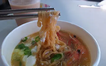 再次來到高雄,再次住在六合二路上的旅店,一覺醒來已近中午了,走到街上看到一位叔叔在店外用一排幾個小煲子煮麵,只見他熟練打開麵條的包裝,加湯加配料,幾個煲子同時開動,一碗碗的麵就煮好了﹐原來這家就是美亞迪鍋燒意麵店舖有兩層,地下較細只有2排座位,2樓較大,有約10張枱。在地下點了一碗鍋燒意麵,走到2樓坐了下來,約10分鐘,意麵就從送食物的升降機由地下送到2樓,再由侍應妹妹送餐。最初以為意麵就是意大利粉,原來意麵更像香港的福字即食麵,不過更粗一點,口感也較福字即食麵更Q糯。麵的份量不多,但配料豐富,有帶殼蝦4隻、肉片、肉丸和蜆肉等,湯頭有海鮮的鮮甜味道。最特別的是會隨托盤附上一個用環保紙摺成的紙碗,用來放蝦殼和蜆殼。…查看更多