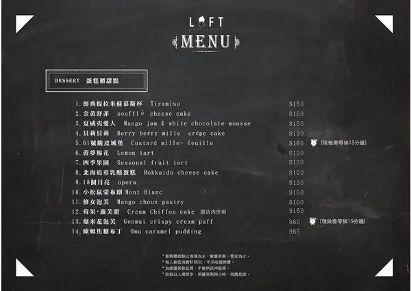 搬回高雄一年多,總算有機會品嚐這間收藏在我口袋名單裡許久的甜點店有不少網友推薦這兒的甜點,加上節目食尚玩家的加持,讓我們很是期待 位於高雄美術館商圈的"蘿芙甜點",店門口寫著斗大"LOFT"字樣與周邊店家相比,其外觀看起來較為低調(要不是有先作功課差點錯過)進門兩側分別是櫃台和甜點蛋糕櫃,以及常溫蛋糕/手工餅乾區和開放式廚房內部裝潢以黑白色調搭配溫潤的同色系木頭,營造出輕鬆愜意的氛圍一樓用餐區約可容納4-5組客人,樓上則是甜點工作室(座位不多建議先訂位)看著櫥櫃裡琳瑯滿目的蛋糕甜點,還有馬卡龍,我的選擇障礙症又要發作啦!!飲料部分以茶類居多、也有咖啡、歐蕾、氣泡飲和果汁等單價約在$80-$180之間;為維護茶飲品質,不提供回沖服務因店內沒有額外加收服務費,須自行至櫃台點餐結帳且茶水自取♬ 玫瑰覆盆子馬卡龍(貪吃價$65)自從法國百年老店LADURÉE撤出台灣後,我已經好久沒吃Macaron了!這擺上一小片玫瑰花瓣的馬卡龍再次吸引了我的目光(其他口味看起來也不賴)但期待中該有的酥脆外殼口感稍嫌軟了點,內餡也未讓我留下太深刻的印象♬ 米歇爾午後(貪吃價$60)我不是巧克力控也沒有很愛吃巧克力,完全是衝著網友力推才點的本以為會是類似布朗尼紮實的口感,沒想到蛋糕體竟如此地蓬鬆柔軟♬ 流口水檸檬蛋糕(貪吃價$65)店內的檸檬蛋糕特別選用天然無毒的屏東檸檬製作(光用想的就流口水)表層的檸檬糖霜微酸不甜膩,但蛋糕口感偏軟不夠紮實,跟我想像中略有落差♬ 經典提拉米蘇(貪吃價$150)這一整杯幾乎都進了黃先生的肚子,恕只有淺嚐一口的我無法評論♬ 冬戀草莓塔(貪吃價$180)夾層以切半的新鮮草莓搭配濃郁卡士達醬,酸酸甜甜卻又不會太過甜膩♬ 栗子夫人(貪吃價$160)有別於常見的栗子蛋糕做法,這兒是將手工熬煮的栗子餡夾在泡芙裡在綿密細緻的栗子泥裡同時吃得到栗子顆粒及增添風味的藍莓醬但泡芙外皮實在不是很好切,一切就整個陷下去,害我吃得好狼狽 = ="♬ 山中傳奇綠茶(貪吃價$150/壺)這款茶飲喝起來有股淡雅的清香,茶味不厚重,很適合搭配甜點[ yi言一語 ]這兒的每一款蛋糕甜點看起來都好精緻,讓人想吃卻又捨不得破壞但實際品嚐後發現其表現似乎不如外觀般讓我驚豔(難道我們又點錯了???)…查看更多