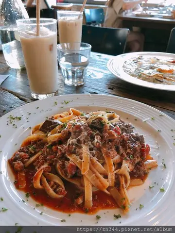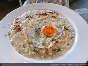 波波廚房在恆春是有著80年以上歷史的超人氣老屋餐廳,即使我們平日中午到訪仍然是座無虛席,只好先登記電話等候通知,再走路到附近玉珍香餅店採買手工蛋捲作伴手禮,打發一點時間,幸好餐廳位置還算多,我們大約只等了10~15分鐘左右就接到電話通知有位置了。一樓進門販售冰淇淋,旁邊則是麵包坊,聽說它們家的義式冰淇淋和麵包都很好吃,沒有上樓用餐的話也很多人直接外帶,我是真的蠻有興趣的,尤其是正在烘培中的麵包香氣撲鼻而來,實在太具有誘惑力,但這次來主要還是午餐,所以只好忍痛放棄,直奔二樓餐區了。對於老屋改造的餐廳我一直很情有獨鍾,有舊時代的況味又結合了新時代的雅趣,斑駁的牆、高低錯落的桌椅和格紋窗,賣的是時下最流行的復古,加上義式料理的衝突,整間餐廳充滿了濃厚的異國風情。店員有詢問我們能不能接受併桌,因為不想等太久,所以就同意了提案,也還好雖然併桌和隔壁仍有相隔一張椅子的距離,尚且算是有稍微區隔出兩組人馬。我們一人點了義大利麵一人點了燉飯,畢竟是炎熱至極的墾丁盛夏,又各點了一杯冰鮮奶茶消暑,波波廚房的菜單其實還有很多感興趣的品項,可惜我們只有兩個人,若是多一點人來還可以再多點開胃菜、披薩或甜點。肉多多波隆那寬扁麵(內含牛肉成份) $280本來我已經決定點慢燉手撕鴨肉鳥巢麵作我的主餐,但看到隔壁桌的肉多多波隆那寬扁麵立馬倒戈變心,寬扁麵條煮的軟硬適度,不會過於軟爛,每一口都吃得到肉塊、肉末更讓無肉不歡的人感到滿足,作為基底的紅醬有蕃茄的微酸甘甜,風味濃厚即便是平時吃慣白醬的我也臣服。波波媽媽家常燉飯 $230糊塗鈞的波波媽媽家常燉飯嚴格說起來就是奶油野菇燉飯。米飯用的是義大利米,吃起來仍保有米心的硬度,白醬相當濃郁,因此吃到最後會稍嫌膩口,但整體份量並不多,要清空盤子也不是太困難,搭配其中的食材是蕈菇,再加上一顆煎半熟蛋,如此的簡單樸實,就像法國鄉村媽媽煮的家常菜。鮮奶茶 $100號稱焦糖是自家熬煮,鮮奶茶好喝是好喝,但甜度實在太高,若不是螞蟻人的話恐怕會一直想兑水,大概是太久沒喝過半糖以上的飲料,對甜飲的接受度也下降許多,一開始忘了問能不能調整甜度,真是失策~整體而言波波廚房的餐點算是很有水準,無怪乎能成為超人氣餐廳,除了具有特色的洋房建築能成為網紅打卡聖地之外,美味當家才是重點。吃完飯後不妨到隔壁《海角七號》主角阿嘉的家走走逛逛,沒想到這齣當年曾經轟動一時的電影上映至今已經過了12年,還一度帶起了墾丁恆春的觀光熱潮,當時拍攝的場景就這樣保存下來,也成為了遊客朝聖的景點,只是阿嘉的家裡面沒有阿嘉,現在是販售紀念品的商店,看過別人寫的遊記,之前還有開放收費上樓參觀阿嘉的房間,但這次去,樓梯前的路口被紀念品擺設屏風整個擋住,不曉得是不是已經取消參觀,因為本來就沒打算花這筆參觀費,也就沒有多詢問店家了。倒是這面寫著大大的海角七號的白牆,到此一遊的巡禮照片也該是留下的。查看更多