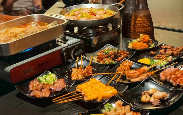 關於 開串- 麻辣烤魚乾鍋串燒吃到飽高雄首創串燒、麻辣乾鍋、重慶烤魚、酸菜魚吃到飽只要799元起!一次可以吃到日式串燒, 經典麻辣烤魚, 爆滿卜卜鍋,頂級方案還包含高級食材像是炸牡蠣, 帶骨牛小排,當日鮮魚烤魚 , 干貝等而且食材都是廚房料理好上桌不用自己煮,是個非常有特色又很適合聚餐的吃到飽方式,絕不能錯過的三民區美食店內走復古宮廷風路線, 料理方式是居酒屋快炒為主全部都是包廂式座位, 吃飯比較沒有壓迫感也沒有隔壁桌影響聊天的問題,中間是8人座位, 小部門, 大家庭聚餐都可以坐一起這邊營業時間相對於很多吃到飽餐廳晚非常多,一直營業到凌晨1點, 沒有中午休息時間,下班想吃都可以吃得到,又或者輪班的朋友下午下班都可以直接來吃~整體裝潢設計真的蠻有特色,很像最近流行的重慶烤魚, 乾鍋呈現的浮誇感,選用紅色是非常搶眼,整體空間不會很擁擠,像一般的4人桌, 要放下大量餐點也是夠的~價格方案開串提供三種不同價位方案, 從799到989+10%基本方案就有提供超過45種不同的食材可以選擇899是最人氣方案, 可以品嚐到橫隔膜還有酸菜魚,當然想要一次品嚐到重慶烤魚, 當日現撈鮮魚跟干貝, 牛舌等不到千元的989方案選下去就對了,整體來講居酒屋快炒方案包含炸物, 烤物, 串燒, 主食,各種類別都是非常豐富很有誠意~桌上提供了各種不同的調味料,紙巾, 濕紙巾牙線棒都有完整供應,最貼心靠牆桌邊都有提供充電插座,現在人手機不離身, 隨時隨地能夠充電真的很重要~用餐 | 點餐方式飲料部分也是使用點單, 直接送到桌邊,基本上在這邊用餐完全不需要自己出去取餐,完全全桌邊服務,覺得這樣還蠻輕鬆 , 朋友聚餐比較可以專心聊天各種不同的料理方式都能吃得到超多元,點餐採用掃碼點餐方式, 每次最多可以點十樣,點餐完畢服務人員都會把明細放在桌邊,今天用餐下來, 完全沒漏單狀況非常優秀~麻辣烤鮮魚招牌的重慶麻辣烤魚想要吃多少都可以,經過調整后的麻辣烤魚,辣度部分比較符合大眾的需求在桌上會繼續加熱 ,味道會更入味,魚皮吃起來帶有脆感, 附麻辣湯汁的魚肉相當細緻鮮嫩,除了魚本身的鮮甜, 還多了很有層次的麻辣香氣招牌卜卜鍋大量新鮮蛤蜊隨著湯頭滾開蛤蜊打開產生的聲音因而得名自己超喜歡蛤蜊煮開後湯頭非常鮮甜然後搭配著每顆新鮮飽滿的蛤蜊, 海鮮愛好者必點鍋物部分只要吃完也是可以繼續加點,像我們選擇最頂級方案三種鍋物都可以點今天2個人就吃了兩種, 所以人數比較多的話也可以吃到比較多種類哦 ~上菜速度也是蠻快, 除了烤魚會比較花時間外,大部分餐點都在5-10分鐘內可以上桌餐廳外場人手也非常足夠 ,覺得整過程還蠻流暢,比之前吃過上菜的吃到飽體驗好許多~帶骨牛小排直接料理好的帶骨牛小排口感柔嫩,覺得比我自己在燒肉處理好吃多了XD自己最喜歡的牛肉品項除了橫隔膜, 第二就是帶著骨牛小排,真的完全居酒屋單點料理等級不誇張,光吃這2個就直接大回本~蔥鹽橫隔膜牛橫隔膜只要899中間套餐就能選擇,專人料理幫你處理好最佳熟度還不用自己烤,一份份量就給很大方,喜歡吃居酒屋肉類的朋友, 絕對可以吃得很過癮~炙燒牛舌頂級套餐的獨家選擇, 一份兩片可以按照自己的需求點,Q彈牛舌有一點炭火香氣配上必備蔥鹽~招牌牛肋條帶嚼勁肉質較有韌性,因脂肪含量較高吃起來口感比較香甜多汁,相比一般牛肉較不乾澀 ~麻辣鮮干貝不到千元就能干貝吃到飽,不用去更貴的高級buffet,而且專人幫你送到桌邊, 不用排隊,989 方案限定 ,真的推薦第一次就是攻頂就對~宮保鯊魚丁台灣鯊魚腹肉丁來自臺灣海域的極致美味,特殊口感最適合就是酥炸,含膠質魚肉含水量高, 口感軟嫩,不會像一般的炸魚肉都比較偏乾柴新菜單上市絕對要試看看~鹽烤當日鮮魚當日的頂級方案烤鮮魚, 選用的是紅條石斑, 也就是俗稱的東星斑完全沒聽錯, 在吃到飽可以無限享用,Q彈魚皮鮮嫩的肉質是最大特色,幾乎原味享用, 喜歡吃魚的朋友大家一人來一隻絕對可以吃得很過癮~宮保辣豬蹄在剛更新不久的菜單裡面新上市的熱炒項目,Q彈的豬蹄骨和肉比例幾乎是1比1選用的部位含肉量還蠻高的,醬汁個人覺得很下飯,香酥炸肥腸肥腸處理的很乾淨, 炸後外皮吃起來很酥香,無腥味又酥脆鹹香的酥炸肥腸,搭配上新鮮青蔥香味四溢~海邊烤魷魚去觀光景點吃烤魷魚破150都很正常XD這邊整支烤給你 , 想吃多少點多少,魷魚口感爽脆鮮甜, 還蠻新鮮的有兩種不同的調味可以選擇~炸蝦天婦羅日式居酒屋必備的天婦羅, 採用比較爽脆的麵包粉整隻炸蝦口感Q彈厚實 ,我覺得這樣少量製作比buffet餐廳還要好吃,拿到還是熱熱脆脆的~炸厚岸生蠔每次去居酒屋必點炸物除了蝦子就是生蠔,日式炸生蠔同樣也是可以吃到飽 ,美乃滋還有日式炸粉, 外酥內嫩又鮮甜的口感讓人喜愛~炸澎湖花枝丸真的可以吃到整塊花枝還有Q彈魚漿的鮮甜感,切薄片方便大家一起分享~炒高麗菜串燒系列雞腿 明太子 | 蔥鹽 | 招牌開串除了干鍋系列, 另外一個厲害系列就是串燒,多種不同肉類搭配上自選調味,像雞腿部分我個人推薦明太子,當然如果想吃較不會膩的話蔥鹽也非常棒每串串燒燒烤時間很夠, 真的都是外脆內嫩的口感~五花牛 招牌 | 蔥鹽 | 醬燒牛肉串燒同樣提供三種不同的調味方式選用油脂均衡的五花牛肉,口感柔嫩不乾柴豬梅花蔥鹽 羊肉串 | 孜然