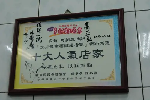 網路票選十大人氣名店冬天一天活力的來源--阿誠麻油雞~ 本來原址在六合路附近,只有2張桌子的阿誠麻油雞,前一陣子搬來建興路上...和春戲院附近,唷吼~來大飽口福囉!!這裡的強項,不只有"麻油雞"唷!!hank媽覺得價位都很平價捏!!會噴汁....!!莫非..雞..戈活跳跳..!!有自製沾醬&豆瓣醬酸辣不太辣的豆瓣醬我們的座位..拉契seven~老闆來介紹麻油雞啦~簡單一句話..就是真材實料!!還有,老闆希望幫他澄清一下...今年特冷的冬天,生意比以往還要好很多但~這些真材實料熬煮的湯頭...每天量就這麼多,賣完就沒有了,以至於..有些太晚來的客人買不到,實在是千百個不願意,並不是奧老闆的啦!!來品嚐真材實料囉!!麻油雞 $80.-~這樣一碗裡..大約4至5塊雞肉,是不是真材實料又便宜!!冷吱吱ㄟ冬天,喝了這湯..整個倫..都活過來了!!原味蛤仔雞 $90.-蛤仔大又飽滿,加了蛤仔的雞湯..特別清甜~養生香菇雞 $90.-正港媽媽家常菜的味道!! 油亮脆嫩之大陸妹 $40.-麻油米血 $30.-乾麵線 $30.-麻油炒雙腰 (腰子V.S.雞佛)此道是老闆特地料理,價位不明!!正港ㄟ雞佛..記得..這是小時候喜宴才會吃到的料理!!好吃又不留腥味的腰子..是要有真功夫的廚師才做得出來的唷!!土雞蛋麵線 $50.-就是要這樣半生不熟的蛋..拌一拌!!這道非常適合想喝麻油湯,又不想吃肉的歐巴桑小姐我!!感動捏!!超有口福的一天 報導~~~~~ 阿誠麻油雞高雄市三民區建興路322號(07) 38531230910800586PM 04:00-AM 01:00 週日公休…查看更多