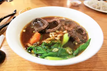 位於大魯閣草衙道3樓美食街裡面。今天小高前來大魯閣草衙道是有目的,目的為何不能說說出來破功,因為我周遭許多好友不知道小高在寫部落格,完成今天的任務之後,當然要找一家餐廳填飽肚子,大魯閣逛遍我太太頭總是搖頭「不要」,這可能是寫美食者最大的悲哀吧!簡單就好就吃「食金湯經典麵食館」好了,食金湯是高雄專業經營牛肉麵店,一樣是有故事聽聽就好,現在可是一家頗具規模的公司,旗下擁有金湯麵食館,食金湯經典麵食館兩大品牌。進大門旁是小型的結帳櫃台。店面挑高寬敞整潔又明亮很舒服。用餐時間人潮滿滿略顯擁擠。整個氛圍有點像是段純貞牛肉麵的感受。牆面上掛著品牌的故事與報紙的相關報導。滷菜品項相當多選擇價錢合理。桌子上就有佐料與筷子供使用。黑色Menu菜色真多主要以麵食類、餃子類、湯類與小菜類為主。滷味基本款75元。這盤滷味有豆干、貢丸、甜不辣、海帶與米血等,旁邊還淋了店家獨製的佐料醬汁。滷味基本上滷的不是很入味所以要沾醬較好吃。水餃60元。水餃皮薄內餡包的相當的飽滿。口感水餃皮Q彈內餡鮮甜很好吃💘。炸醬麵100元。擺盤相當漂亮旁邊還附小黃瓜絲、紅蘿蔔絲與牛蒡絲等配料。麵條上的炸醬用料也是相當豐富。把小黃瓜絲、紅蘿蔔絲與牛蒡絲等配料放入。充分攪拌均勻來品嚐。較粗的拉麵麵條非常的Q彈富嚼勁很好吃。牛肉麵的好伴友酸菜是必備的。牛肉拉麵150元。是紅燒的湯頭不死鹹不膩口好喝。牛肉筋肉交錯Q彈具嚼勁不柴好吃💓。這碗牛肉麵份量足,較粗的拉麵吸滿湯汁滑順Q彈好吃。樂天小高食後個人主觀心得分享(僅供參考)(且不保證店家食材品質與安全):「食金湯經典麵食館-大魯閣店 」空間裝潢用心超舒服,服務態度親切,整體餐點口感算是有水準售價偏高,但還是值得樂天小高推薦給您品嚐。食金湯經典麵食館-大魯閣店電話:07-7930033地址:高雄市前鎮區中山四路100號 (大魯閣草衙道3F) 創作者介紹 樂天小高樂天人生 樂天小高の美食之旅…查看更多