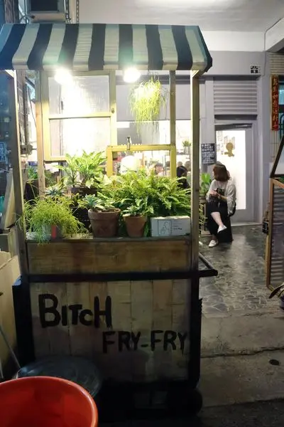 最近不知道為什麼很想念泰式奶茶~一直在找說有沒有泰式小店結果無意中發現這間在巨蛋對面的Bitch 小姐走的路線是非常特別的泰式風格消夜店 其實這家店沒有什麼明顯招牌還蠻容易錯過記住門口這些花跟櫃子吧XD 很明顯老闆就是個藝術家風格路線 在騎樓也有戶外用餐區~ 首先~有貓又加10分了科科XD店家好像八月中樓上水塔出了問題~現在暫時只有外帶所以我們最後是帶到棒球打擊場吃XD 環境不錯啊希望店家可以快點修好 另外一面牆又是充滿了貓的彩繪~ 桌上放的不是菜單而是藝術特刊大部分都是點心所以提供竹籤 老闆真的蠻有才的死八婆也很應景XD 想喝泰式奶茶也可以在這邊現場購買喔~不過泰式奶茶要自己泡其實並沒有這麼簡單~在泰國看過兩種煮法一種是丟在鍋裡面煮的另外一種是用兩個杯子沖需要有濾茶葉的動作反正一定不是用茶壺泡就對了XD 這裡的打拋豬肉好香而且好鹹好道地調味也非常泰式不過相信店家一定有被人家嫌說太鹹口味太重哈哈~ 另外絕對不能錯過就是甜甜圈~有很多種口味可以選擇 來這裡當然就是要喝泰式奶茶XD -蜂蜜鮮奶油甜甜圈-$80這裡的招牌口味~鮮奶油是店家自己打的很濃稠 正方形的甜甜圈外表微微的酥脆中間是空心咬起來口感是Q的很特別而且完全不油膩好吃 -復古紅茶-$30跟早餐店的紅茶很不一樣不會很甜~ -泰式奶茶-$70這裡泰式奶茶好喝啊泰式奶茶就是要甜這邊的奶茶沒有像泰國當地這麼甜不過也不會像台灣很多店家調到像微糖呈現紅橘色的顏色~然後有厚重煉乳的香味 -脆薯-$50皮比較厚的薯條還不錯 -打拋豬肉通心麵-$100不要看這個碗很像很小裡面滿滿通心麵其實份量蠻大的打拋豬料理得很入味口味重辣椒很香~下次回來絕對再點打拋豬肉飯 -BH 特製沙拉-$60其實就是馬鈴薯泥啦不過有沒有看到上面烤過的那一塊~吃不出來是什麼不過超香的XD Bitch Fry Fry 雖然沒有強調泰式料理不過他們的打拋豬真的蠻道地泰式奶茶甜度有減少可是煉乳還是有泰國的水準甜甜圈也是消夜店少見的高品質甜點不然晚上想吃甜的還真的不好找XD 很難得在台灣遇到有點堅持的店家~像瓦城其實每店幾乎都有配泰藉主廚可是吃起來東西根本就台灣的形狀~之前有遇過主廚出來每一桌打招呼跟他說我有在曼谷住過他馬上招待我一碗打拋豬肉飯完全就是泰國的感覺~可見不是店家廚師沒能力其實根本就是大部分客人無法欣賞而已所以有時候吃起來不道地也不能完全怪店家畢竟做生意大部分還是需要迎合客人的習慣罷了 …查看更多